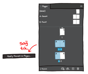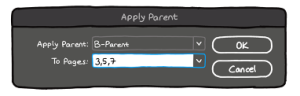 - Bu yolumuz da bi öncekine çok benzer aslında. Hatta tam tersi gibi. Bu sefer atamak istediğimiz Master sayfanın üstüne sağ tık yapıyoruz ve yine öncekinde olduğu gibi “Apply Parent to Pages”e tıklıyoruz. Bu sefer “Apply Parent” kısmında zaten seçtiğiniz, atamak istediğin Master’ın adı yazacak. “To Pages” kısmı da boş olacak. Oraya hangi sayfalarda bu Master olsun istiyorsanız onu yazmanız yeterli.