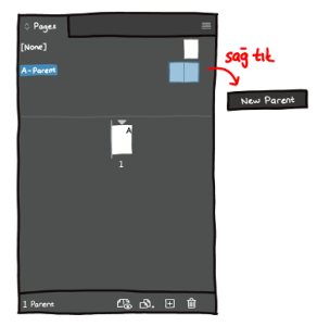 Diğer bir yolumuz; Master Page kısmında sağ tık yapıp aynı şekilde “New Parent”ı seçerek devam edebilirsiniz.